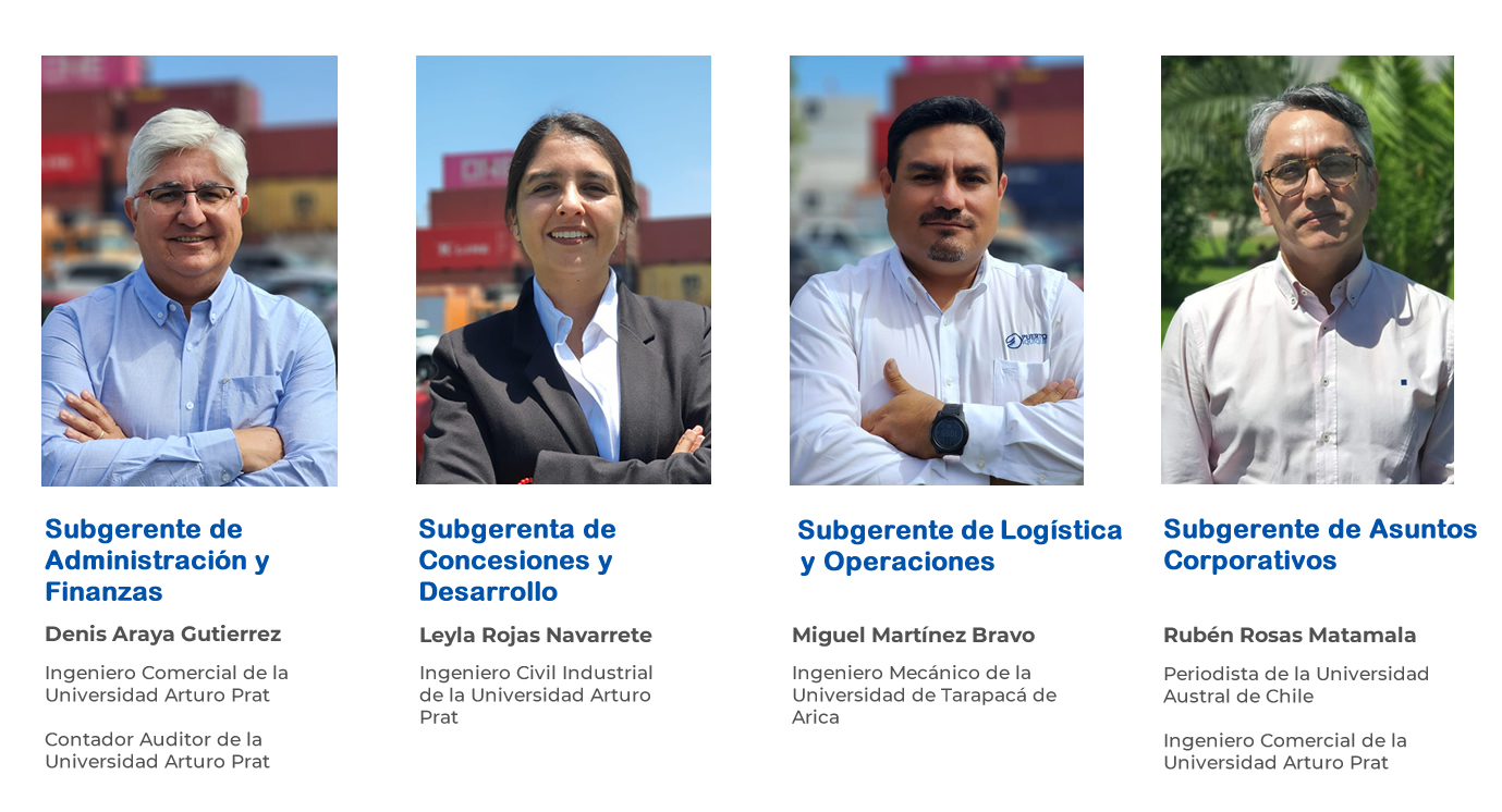 Director, Juan Barboza Vega, Ingeniero Civil Industrial de la Universidad de Las Américas e Ingeniero Constructor de la Universidad Católica del Norte. Posee más de 30 años de experiencia en el ámbito marítimo portuario.